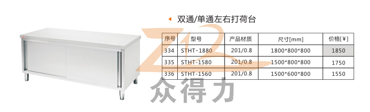 江西眾得力廚具有限公司生產銷售食品機械、商用廚具,為您提供中央廚房整體解決方案而不斷努力,打荷臺系列分為雙通系列單通系列、暖碟系列、翻門系列,標準尺寸為1.8米*800mm和1.5米*800mm兩種規格,歡迎選購。