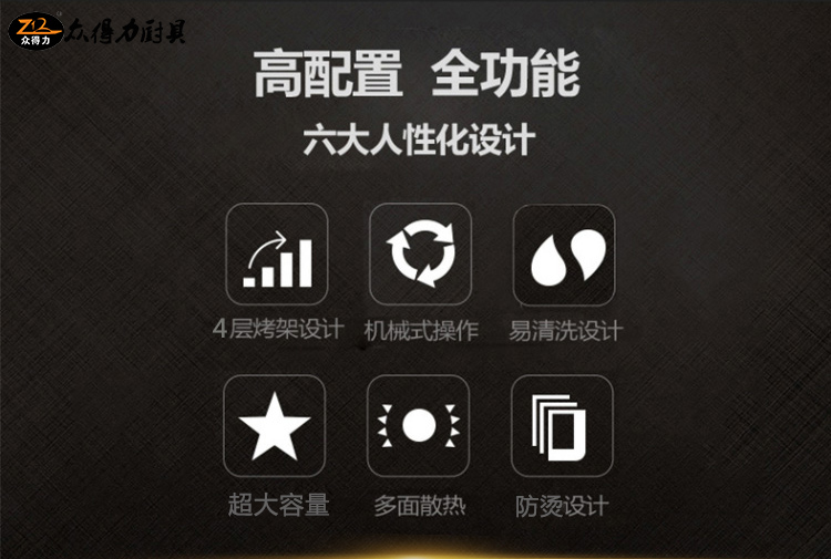 眾得力廚具為您提供多功能烤箱系列產品,適用于家用商用的電烤箱,外形美觀大方,4層烤箱設計,大容量,烘焙面包等。