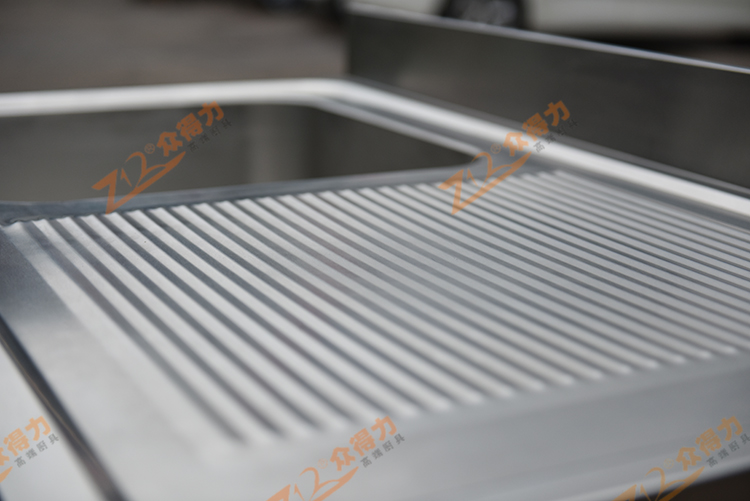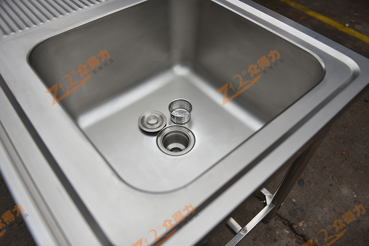 眾得力廚具高端白鋼品質(zhì),單星瀝水臺(tái),單星瀝水池,整體采用201 1.2板材,一體拉伸星盆,板材整體沖壓一次成型,無(wú)死角,一級(jí)板材,紋路清晰有序,光澤度好,做工精細(xì)。